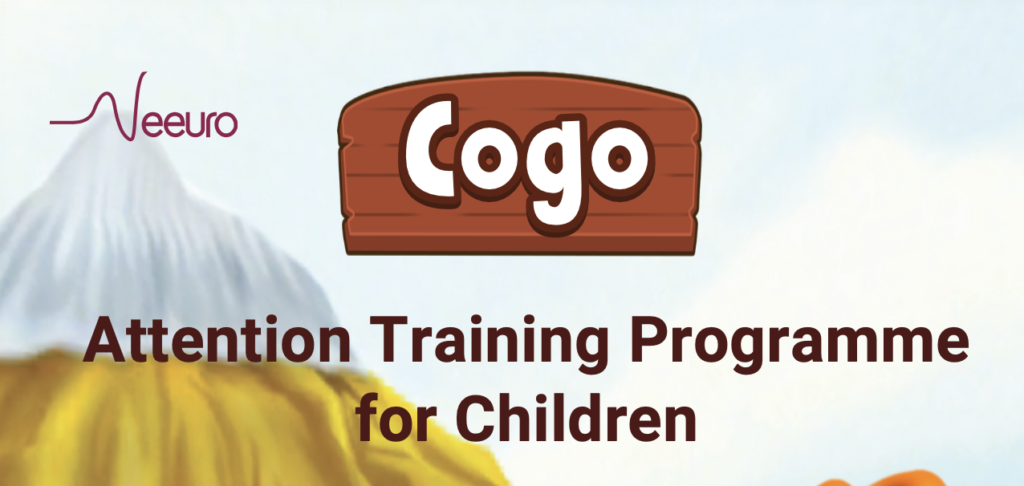 The child’s attention is measured in real-time during these activities to validate the effectiveness of the Cogo training program.